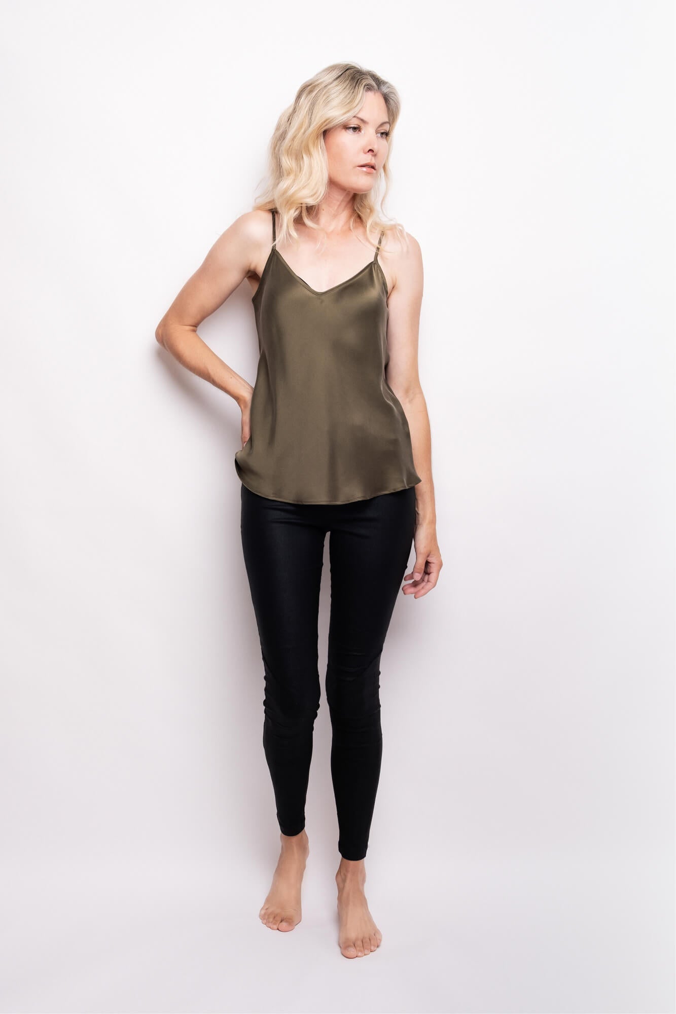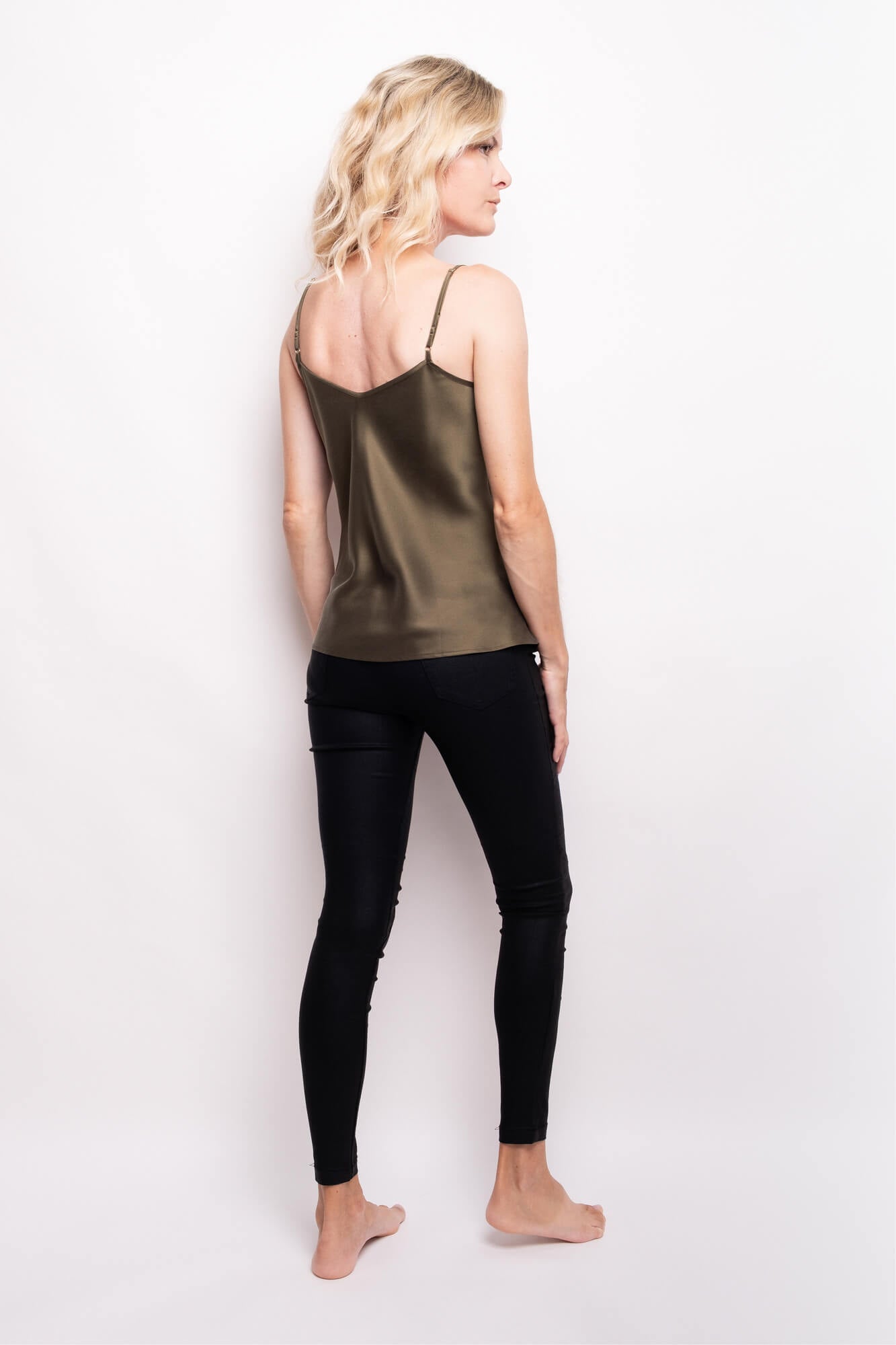 Designed with versatility at its core, this 100% mulberry silk cami offers an effortless, flattering silhouette—equally refined worn alone or layered. Naturally breathable and gentle on the skin, it’s made for everyday wear, with a soft matte finish and fluid feel that bring understated elegance to any look.